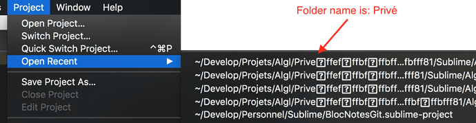 I just wanted to give a heads up on this. After the 3117 update, my recent project list looked garbled at the location where a folder had a accent character “Privé” (which stands for “Private”):