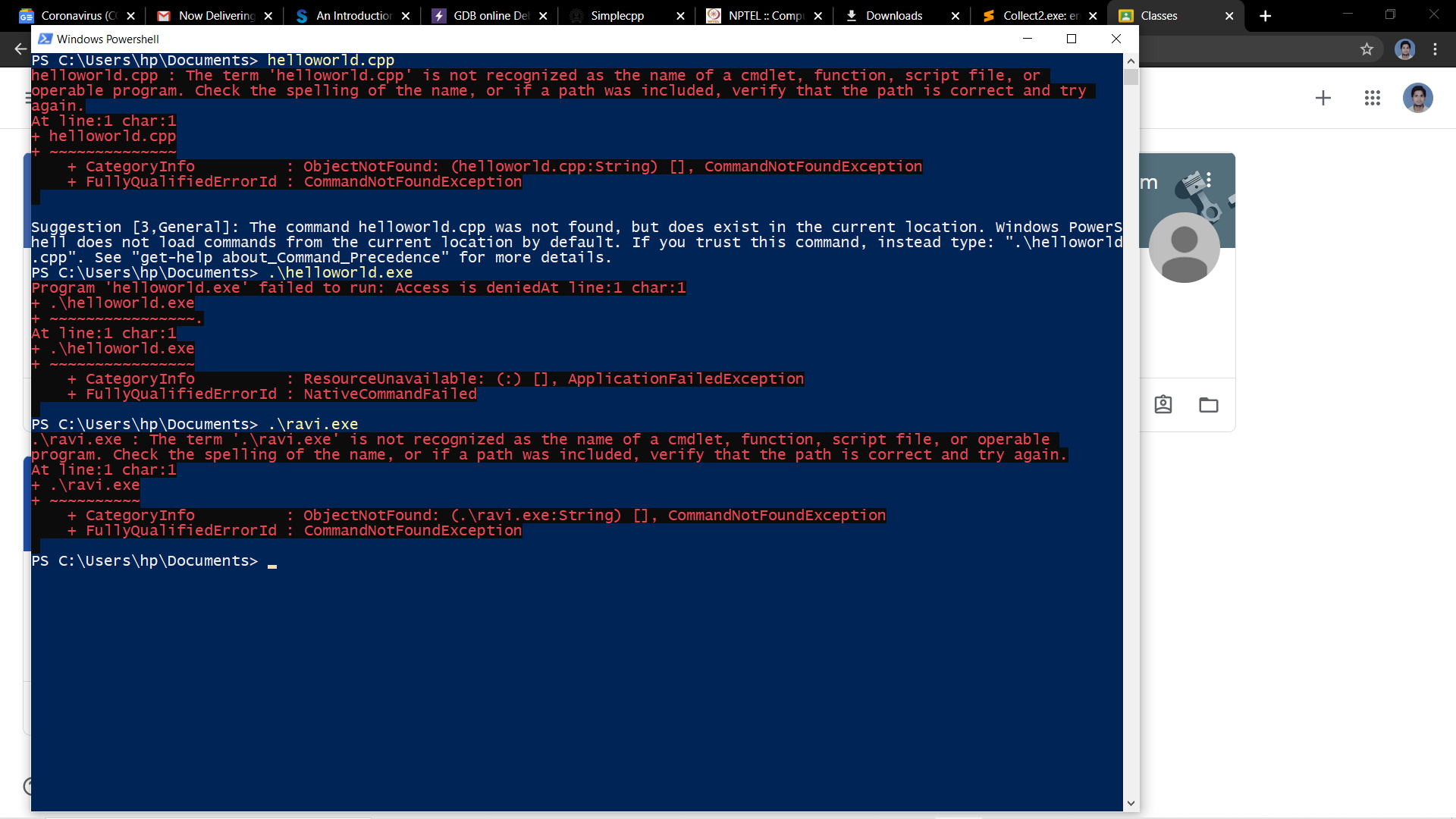 clang++ helloworld.cpp -o helloworld.exe to build your program, and then