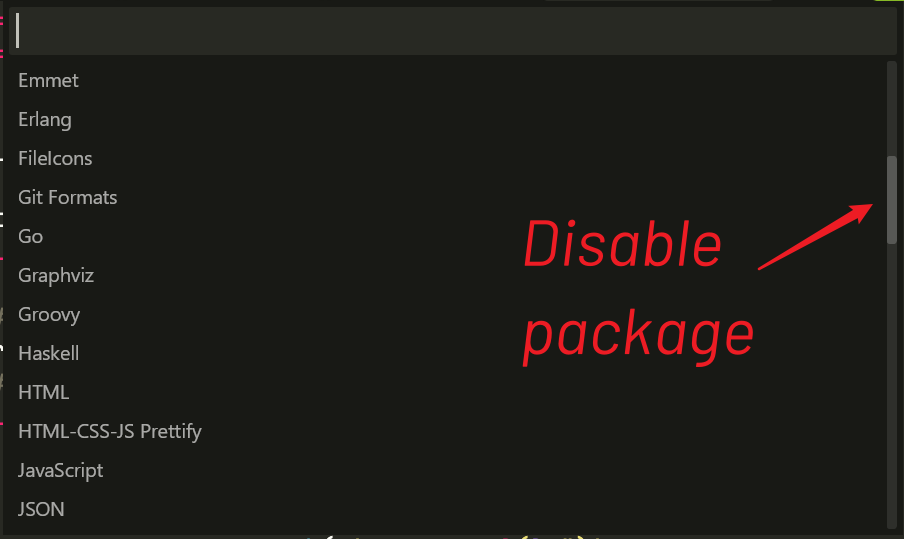 There are many “language” things, maybe highlights or suggestions, while I open the list of “package control disable package”.