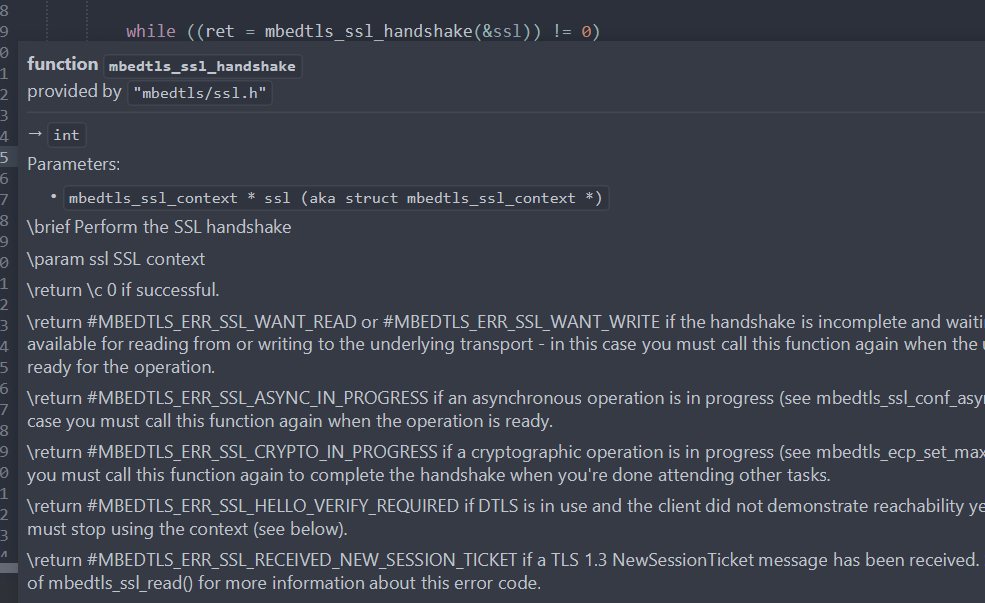 as you can see, mbedtls code uses some kind of formatted doc-comments/docstrings