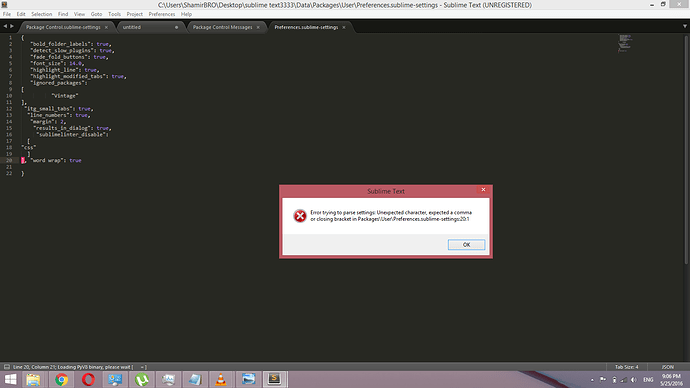 Image #4: It’s telling you that your settings file is broken. That character that is being displayed in red is the part that it’s mad about. Looks like you have an extra closing bracket that you don’t need.