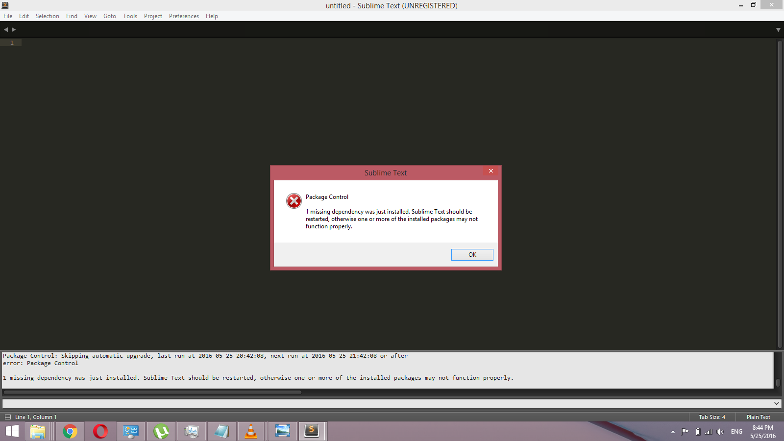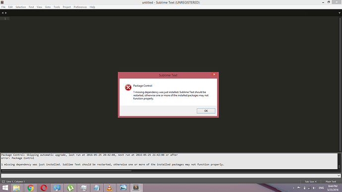 Image #1: Not an error per se, just telling you that you should restart sublime in order for things to work. I assume you’ve already done that.