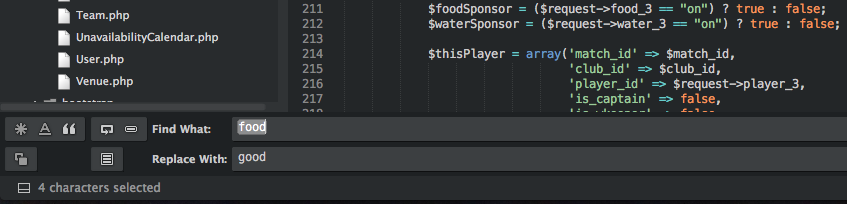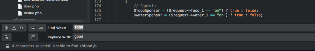 But somehow it is looking for whole word: you can see the \b around food in the taskbar: select/unselect the whole word option.