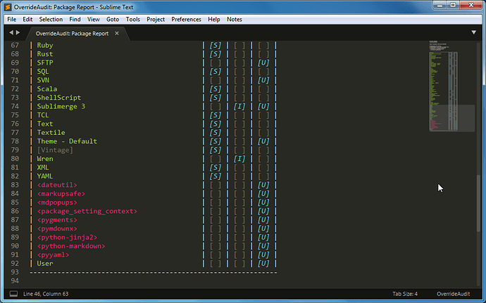 If you install the OverrideAudit package, you can select Tools > OverrideAudit > Package Report from the menu or OverrideAudit: Package Report from the command palette to see a list of all packages, how they’re installed and their status.