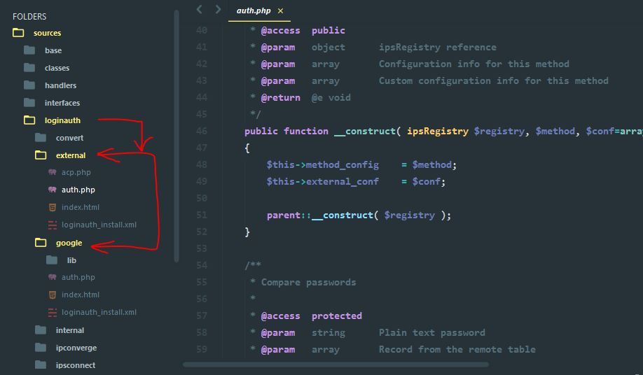 As you can see there is an expanded folder loginauth and it has two subfolders which is also expanded external, google