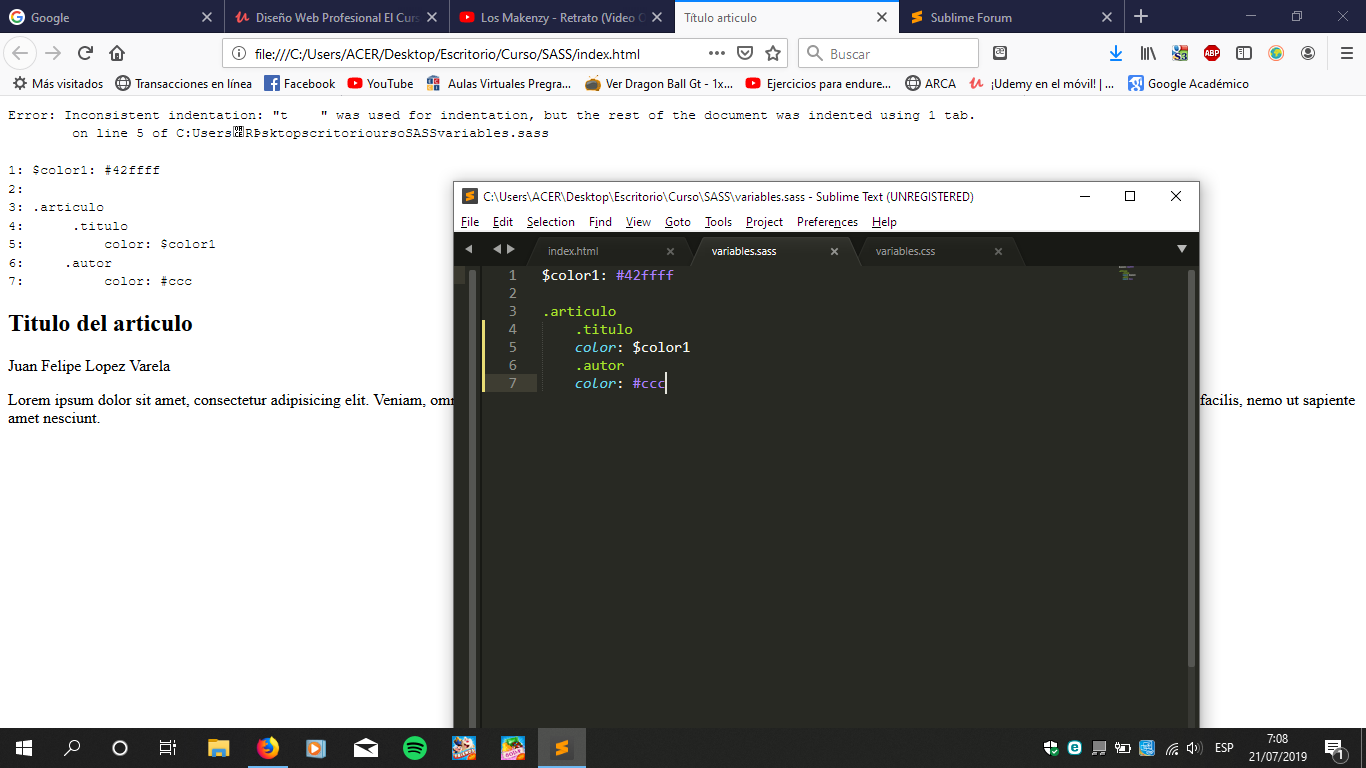 I’m trying to work with SASS but in Sublime appears this error, and the keyTAB doesn’t work…