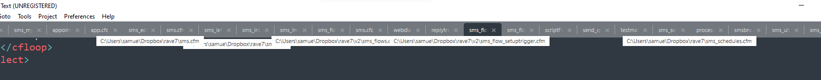 After a while of using the editor, the tabs show all the tooltips all at once like the following image.