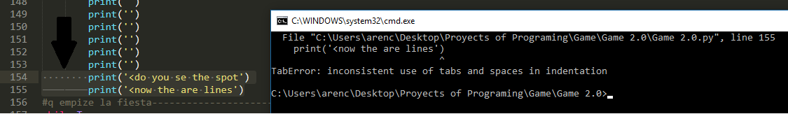 when i press tab happend the lines thing but if i just make the indentation with space happend the spot thing in yhe image i upload so that"s basicly the problem and i don’t know how to fix it and i get a error who don’t let me keep going with the code