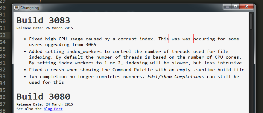 Redundant word ”was“ in changelog of 3083