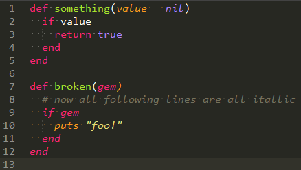 now all following lines are all itallic