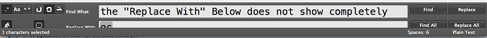 When the “Search and Replace” bar at the bottom of the screen shows, it is chopped off. It displays only about half of the “Replace” section.
