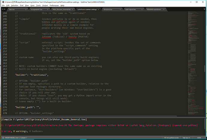 Hi there, I want to use latextools on ST3 to compile a file with Lualatex, and I did as the instruction that I added “%! Tex program = xelatex” to the first line of my document