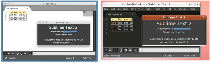 On Mac OS X 10.6.8 (left), the regular expression (.+) grabs an entire line. On Ubuntu 12.10 (right), the same regular expression misses the trailing “);”.