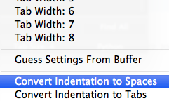 I change them to spaces using the convert to spaces option, and can see them change in the editor