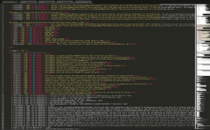 Shown is a screenshot (sorry for the censorship) that illustrates what’s happening - any code outside of a roughly 1400x850 area turns transparent so you can see the desktop (or in this case the browser background color) behind it. My desktop resolution is 1920x1200, and the second display is 1280x1024. Can’t figure this one out.
