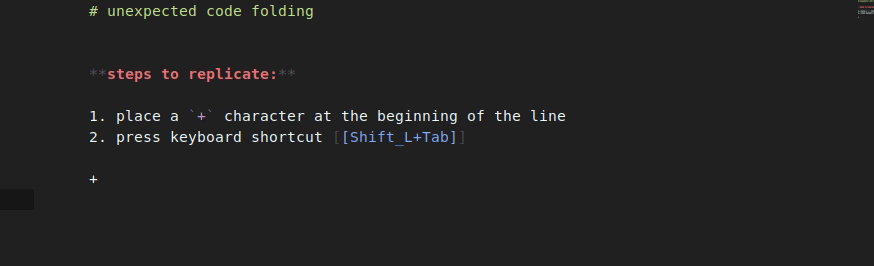 issue: indenting / unindenting unordered lists trigger a code folding.