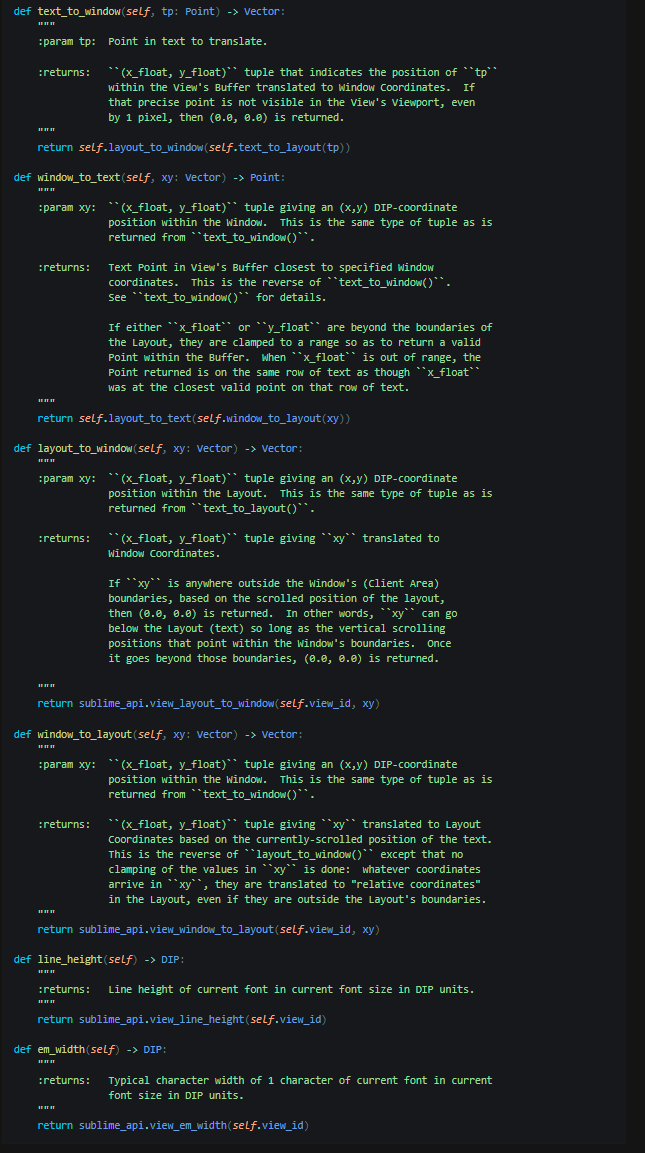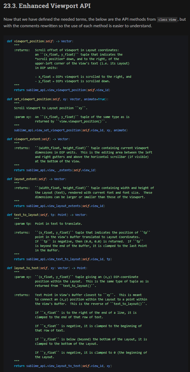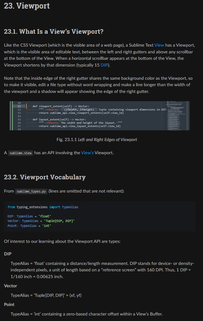 Does it follow a viewport model (such as CSS) that I can go dig into and learn how to use these functions? (About 20 years ago, I remember doing something similar in C in WIN32, so I’m not a complete beginner, but my memory of it is rusty.) While I have (I think) the correct meanings of DIP, I need Sublime Text definitions for: