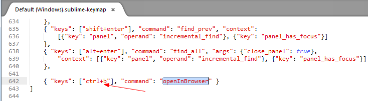 what makes me confused is that this ctrl+b works if it is combined to other command such as close, but why not openInBrowser command, so does st2 support this command, how to know whether it support this command or not?