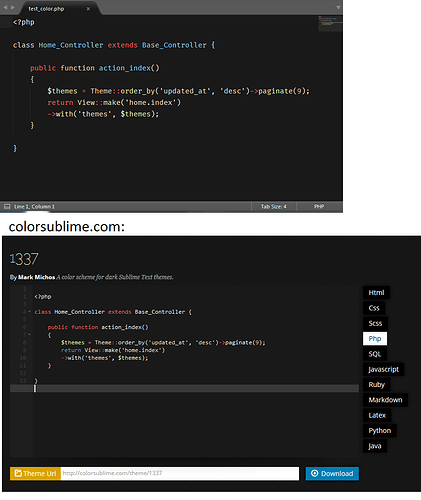 I just want to know, is syntax theme implementation right on my computer? Because it looks better in colorsublime…