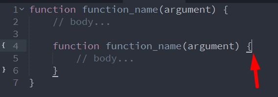 But when the cursor is on the same line with curly brackets, the upper function folds. It should behave like the first example.